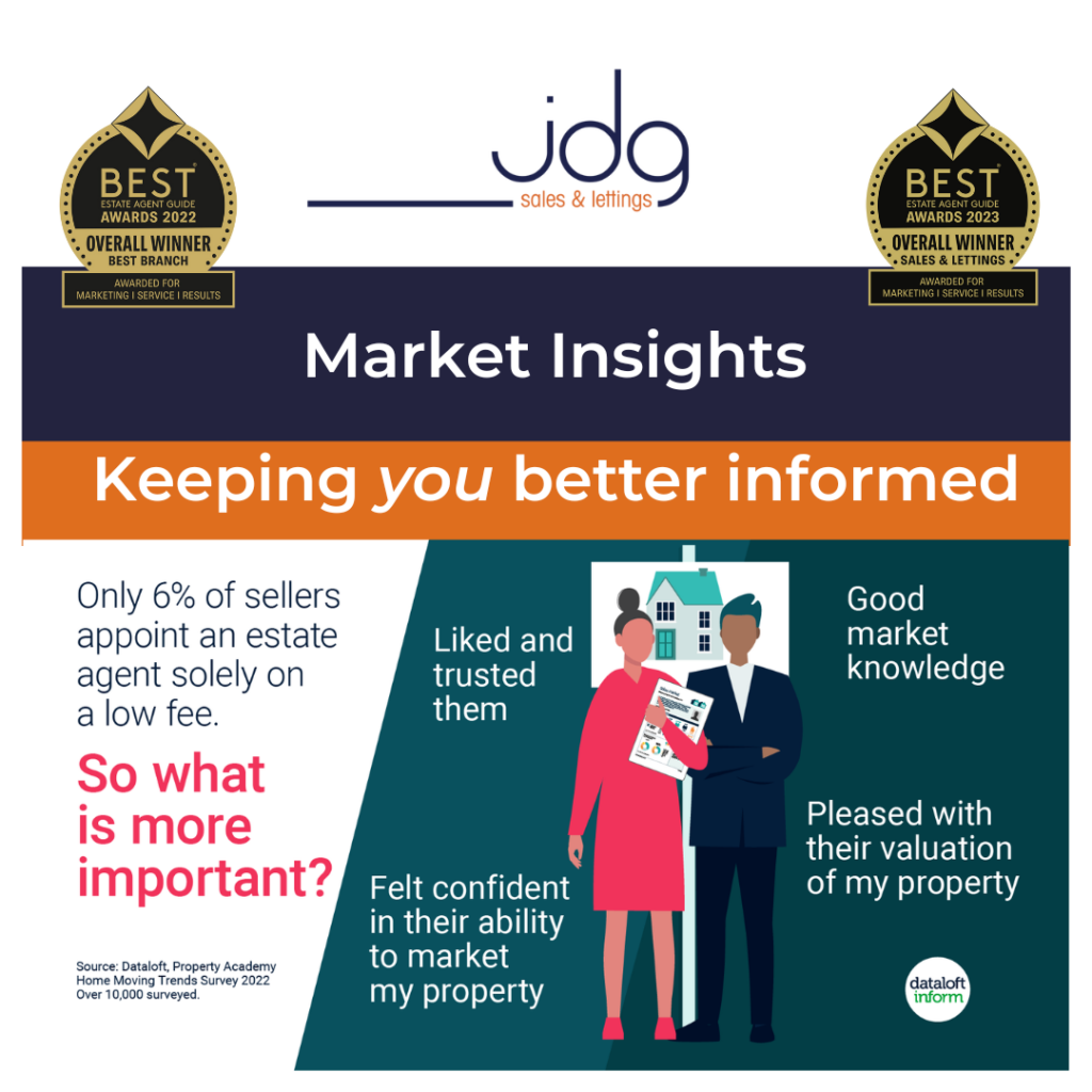 Next, it is deciding which agent to use. The 2022 Property Academy Home Moving Trends survey revealed that, across all ages and household types, factors like ‘being liked and trusted’ and ‘good market knowledge are more important to vendors than the fee they charge. At JDG we love sharing our market knowledge. Our tagline is #BeBetterInformed. We also have lots of returning clients and personal recommendations. Don’t forget, we have been selling homes locally since 1989.