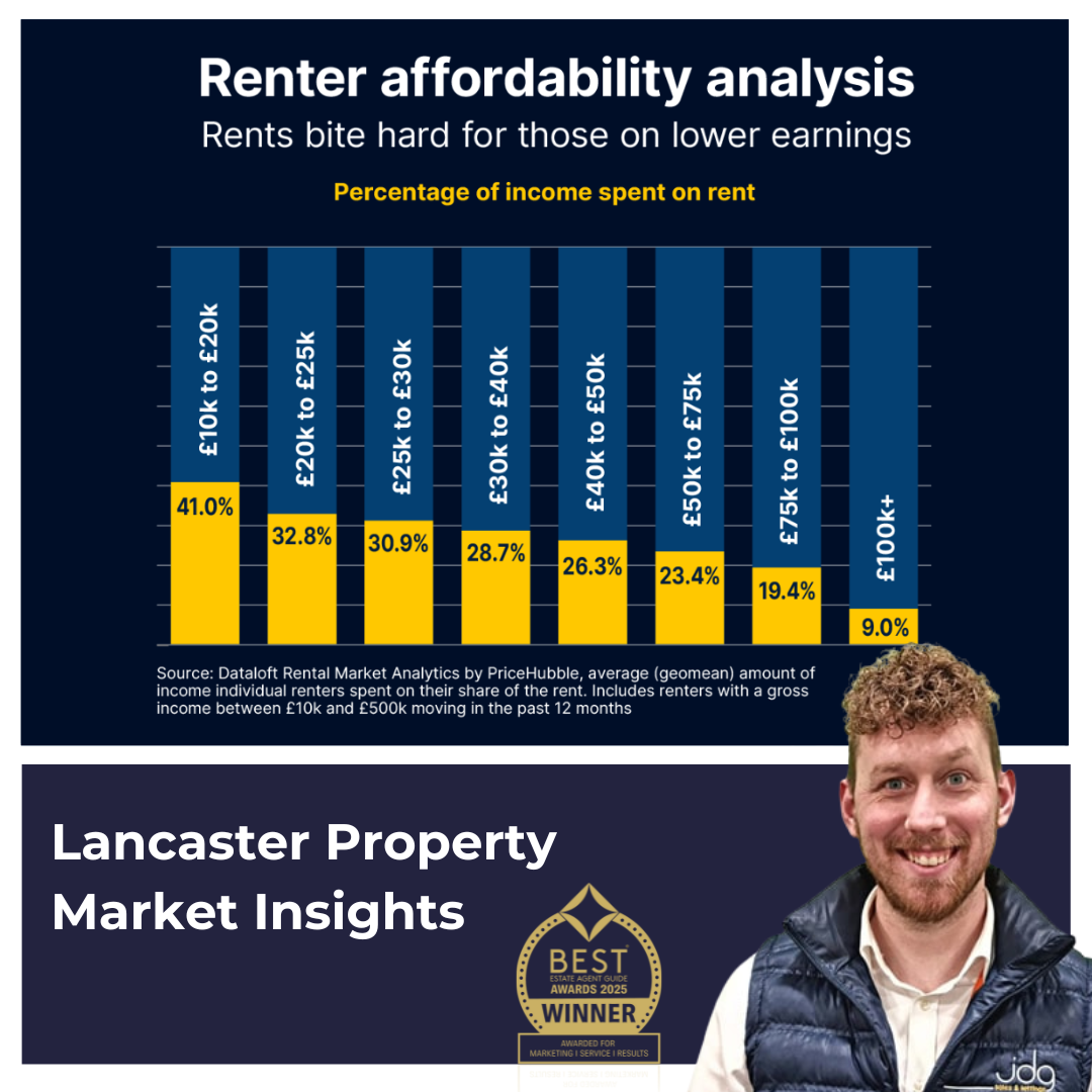 Affordability has become one of the most talked-about topics in the property world, and for good reason. Across Lancaster and Morecambe, renters are feeling the squeeze more than ever before. Recent figures show that renters on the lowest incomes – those earning between £10,000 and £20,000 a year – are spending over 40% of their earnings on rent. By comparison, those earning £100,000 or more spend just 9%.